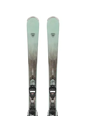 Image produit montrant une paire de skis alpins avec fixations, photographiée de face et présentée verticalement sur un fond blanc. Cette image est utilisée pour illustrer l’offre de ski proposée par Colette Sport.